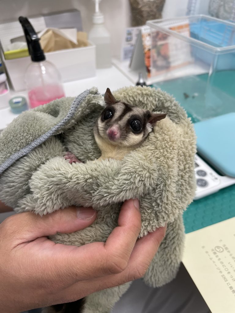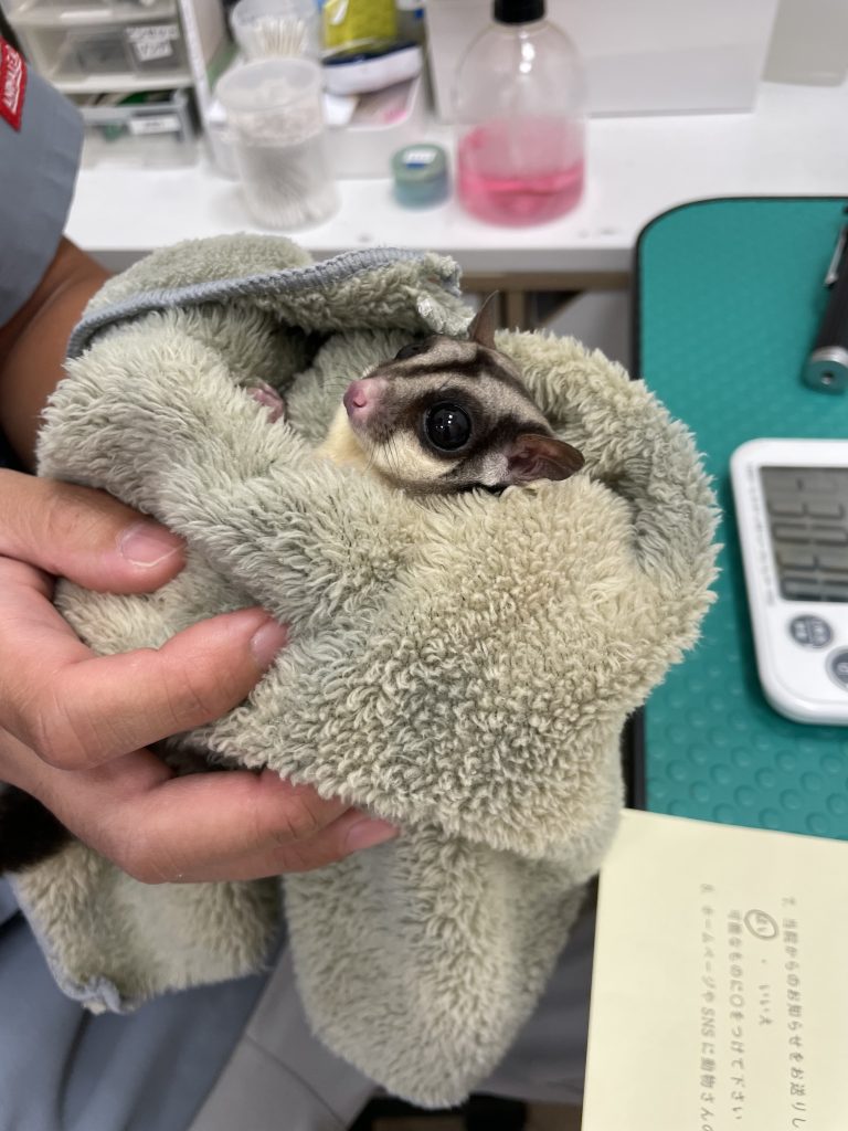 フクモモさんも賢くて病院に段々と慣れてくれる子が多いです。写真のフクモモさんは初めての病院でしたが随分と落ち着いていましたよ!!