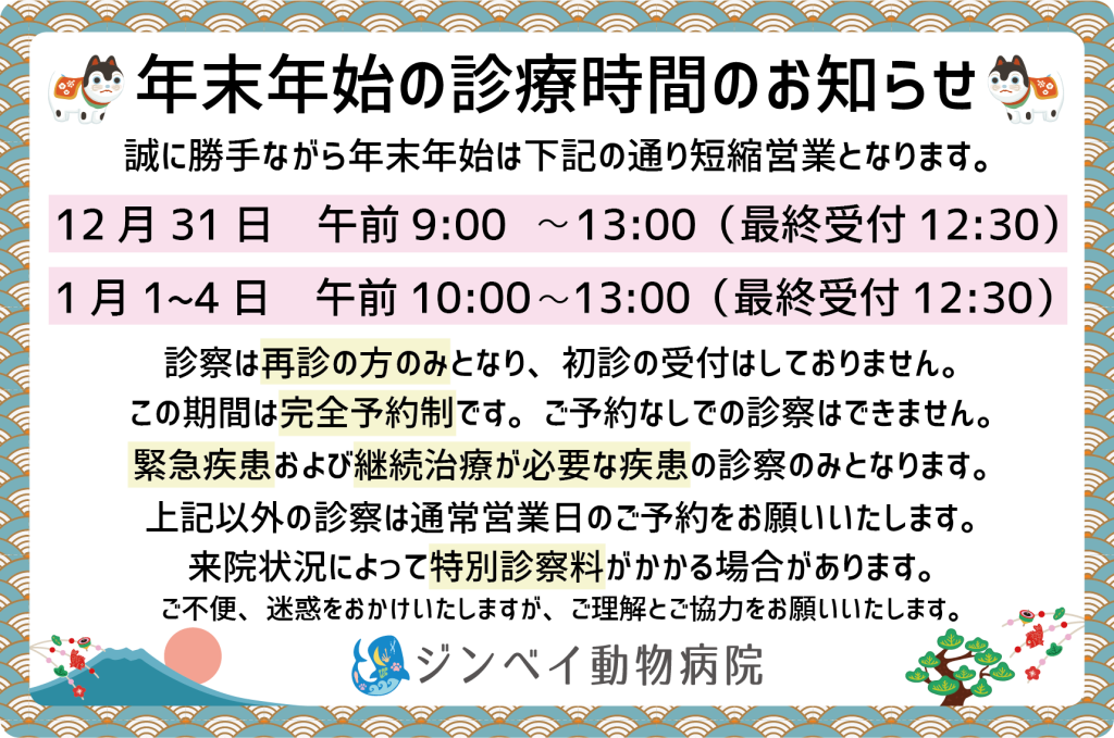 また上記の期間は初診の動物さんの受付は行っておりませんのでご了承ください。